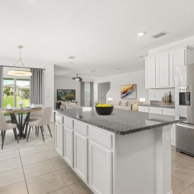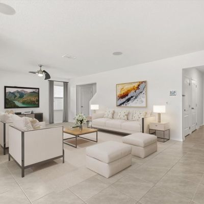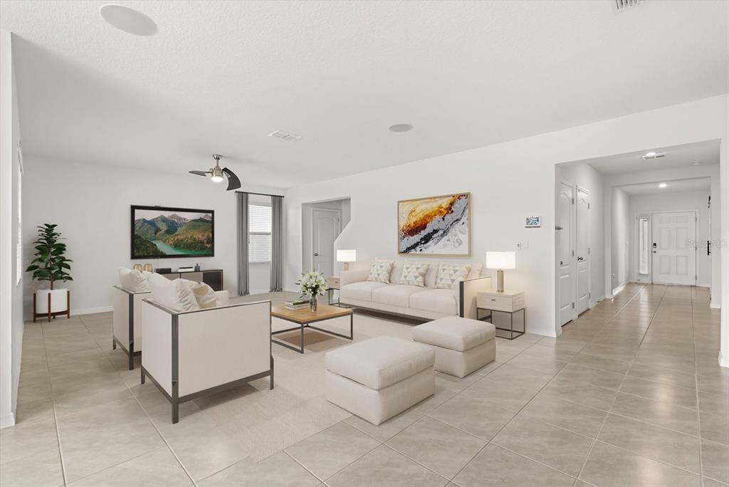 Kitchen/Family Room Combo, Ceiling Fan(s), High Ceilings, Open Floorplan, Solid Surface Counters, Thermostat, Walk-In Closet(s), PrimaryBedroom Upstairs, Smart Home