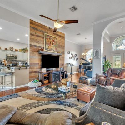 Ceiling Fan(s), Eating Space In Kitchen, High Ceilings, Open Floorplan, Primary Bedroom Main Floor, Solid Surface Counters, Thermostat, Walk-In Closet(s)