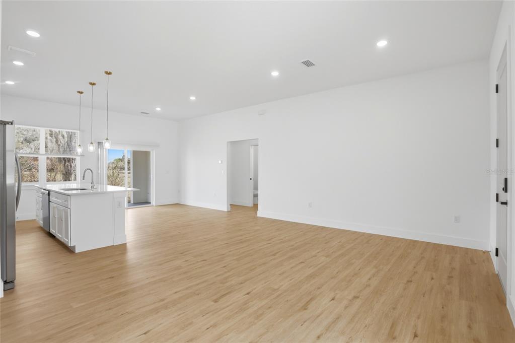 Eating Space In Kitchen, High Ceilings, Kitchen/Family Room Combo, Living Room/Dining Room Combo, Open Floorplan, Primary Bedroom Main Floor, Split Bedroom, Stone Counters, Thermostat, Walk-In Closet(s)
