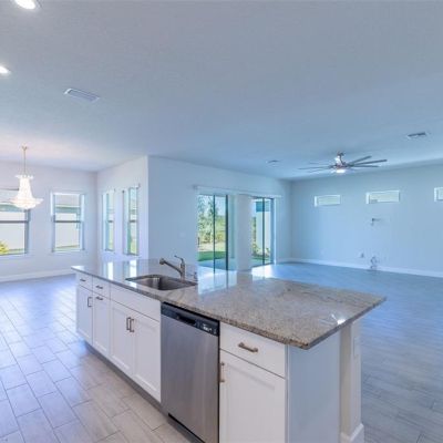 Ceiling Fan(s), High Ceilings, Living Room/Dining Room Combo, Primary Bedroom Main Floor, Solid Surface Counters