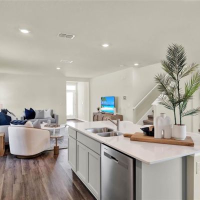 Eating Space In Kitchen, Kitchen/Family Room Combo, Living Room/Dining Room Combo, Open Floorplan, PrimaryBedroom Upstairs, Solid Surface Counters, Stone Counters, Thermostat, Walk-In Closet(s)