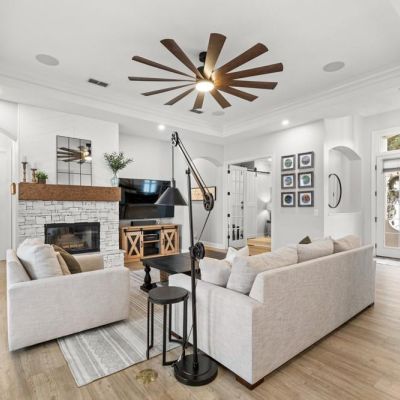Built-in Features, Ceiling Fan(s), Crown Molding, Eating Space In Kitchen, High Ceilings, Split Bedroom, Stone Counters, Tray Ceiling(s), Walk-In Closet(s)