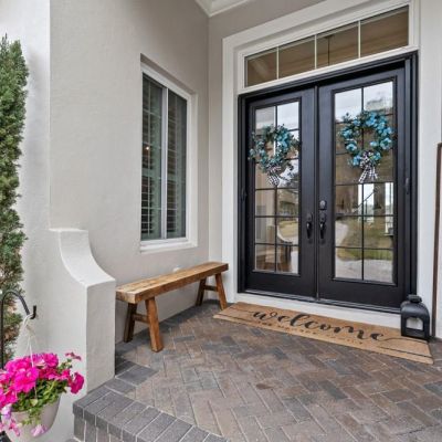 Balcony, French Doors, Lighting, Rain Gutters, Sidewalk