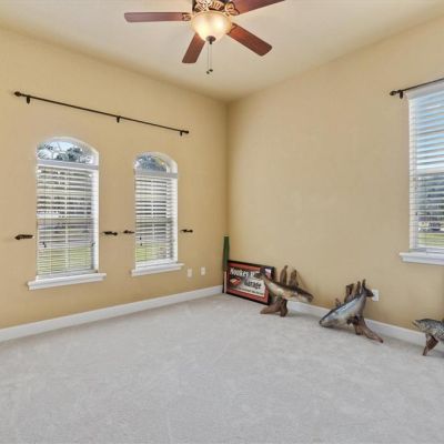 Built-in Features, Ceiling Fan(s), Coffered Ceiling(s), Crown Molding, Eating Space In Kitchen, High Ceilings, Open Floorplan, Solid Wood Cabinets, Split Bedroom, Stone Counters, Thermostat, Tray Ceiling(s), Walk-In Closet(s), Window Treatments