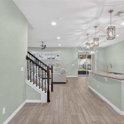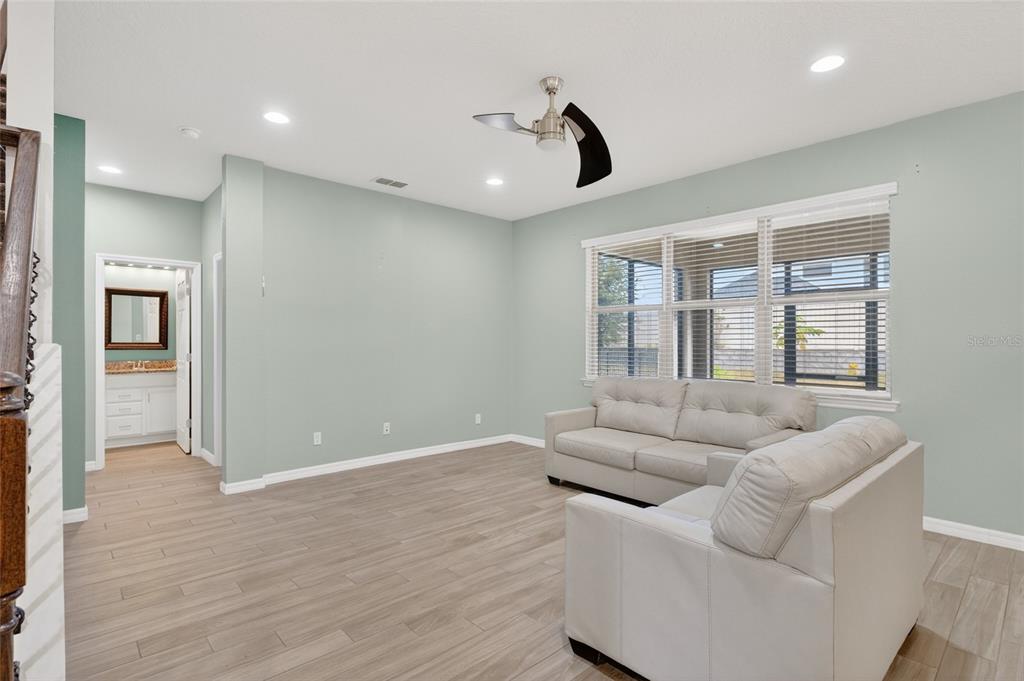 Ceiling Fan(s), High Ceilings, In Wall Pest System, Open Floorplan, PrimaryBedroom Upstairs, Solid Wood Cabinets, Split Bedroom, Stone Counters