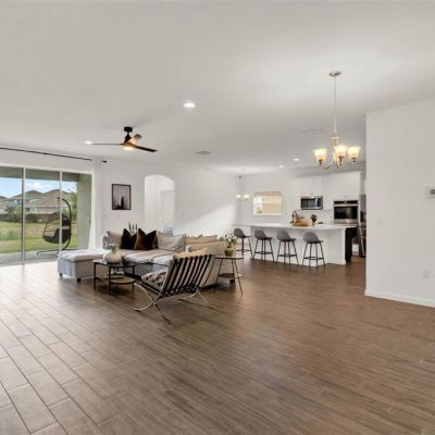 Ceiling Fan(s), Eating Space In Kitchen, Kitchen/Family Room Combo, Living Room/Dining Room Combo, Primary Bedroom Main Floor, Stone Counters, Thermostat, Walk-In Closet(s)