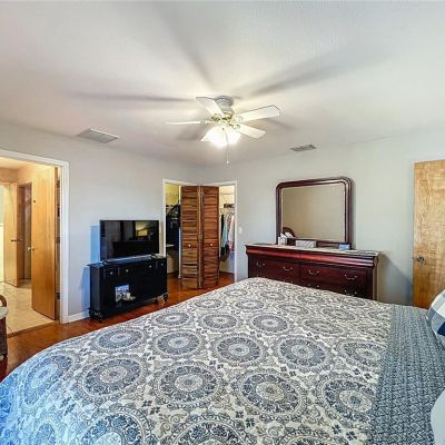 Attic Fan, Ceiling Fan(s), Crown Molding, Eating Space In Kitchen, Kitchen/Family Room Combo, Living Room/Dining Room Combo, Open Floorplan, Primary Bedroom Main Floor, Solid Wood Cabinets, Split Bedroom, Thermostat, Walk-In Closet(s)
