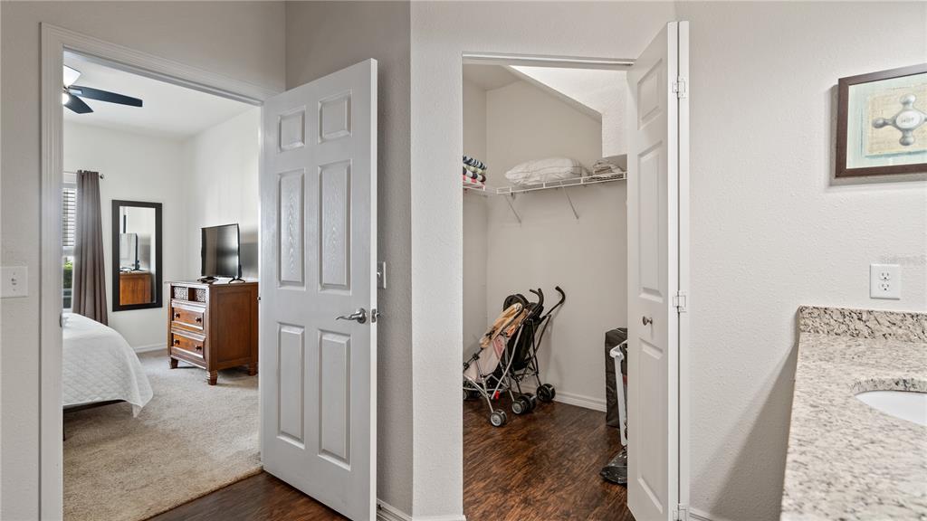 Ceiling Fan(s), Living Room/Dining Room Combo, Solid Surface Counters, Walk-In Closet(s), Window Treatments