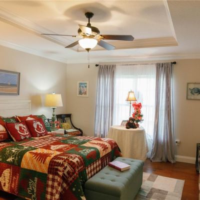 Ceiling Fan(s), Crown Molding, High Ceilings, Primary Bedroom Main Floor, Skylight(s), Solid Surface Counters, Walk-In Closet(s)