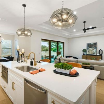 Cathedral Ceiling(s), Ceiling Fan(s), Eating Space In Kitchen, High Ceilings, Kitchen/Family Room Combo, Open Floorplan, Solid Wood Cabinets, Split Bedroom, Stone Counters, Window Treatments