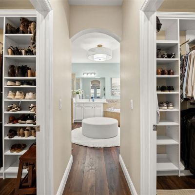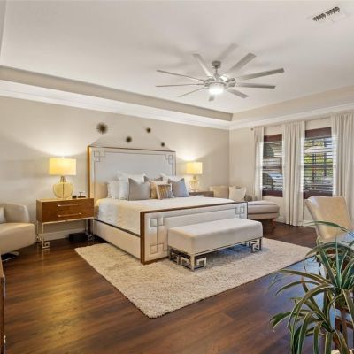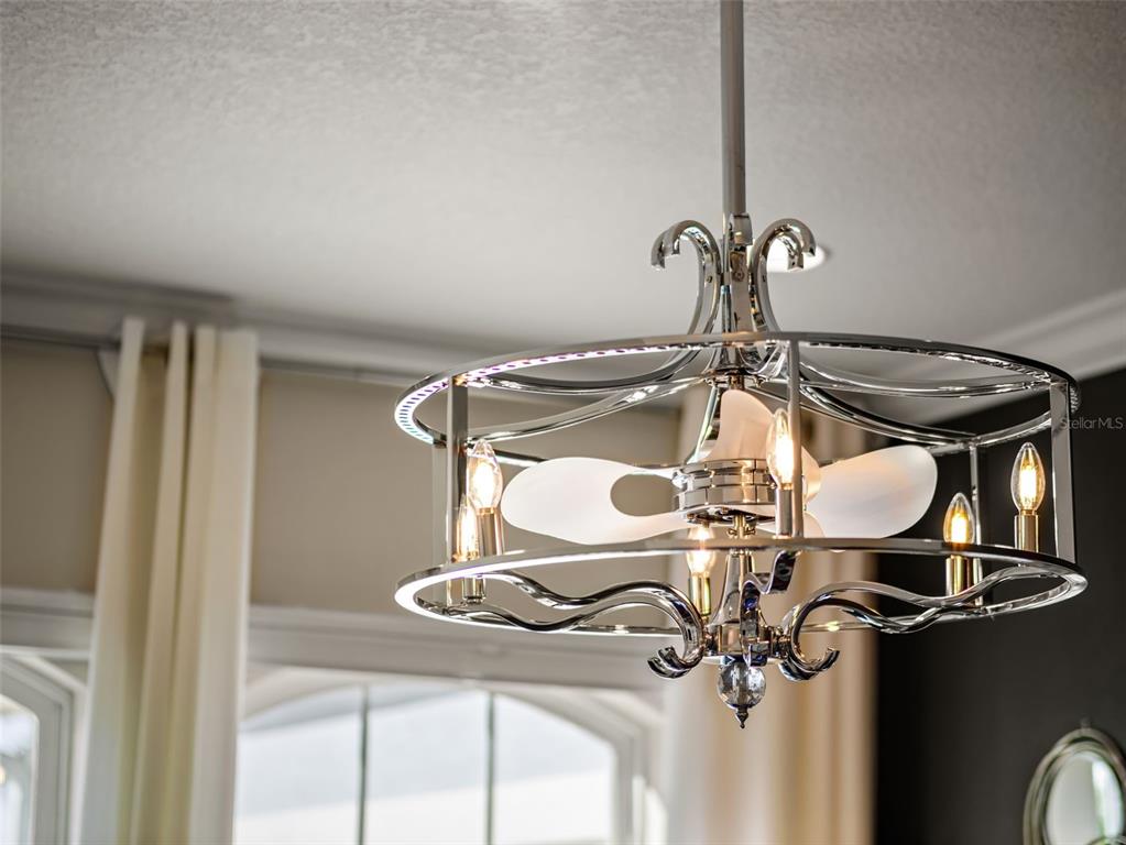 Built-in Features, Ceiling Fan(s), Crown Molding, Eating Space In Kitchen, High Ceilings, Open Floorplan, Primary Bedroom Main Floor, Split Bedroom, Thermostat, Walk-In Closet(s), Window Treatments