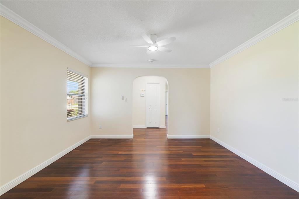 Ceiling Fan(s), Crown Molding, Eating Space In Kitchen, Primary Bedroom Main Floor, Solid Surface Counters, Solid Wood Cabinets, Stone Counters, Thermostat, Walk-In Closet(s), Window Treatments