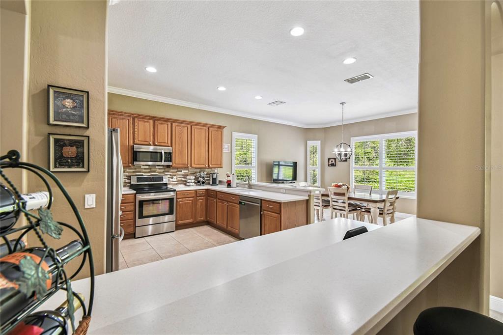 Ceiling Fan(s), Crown Molding, High Ceilings, Open Floorplan, Solid Surface Counters, Solid Wood Cabinets, Split Bedroom, Thermostat, Walk-In Closet(s)