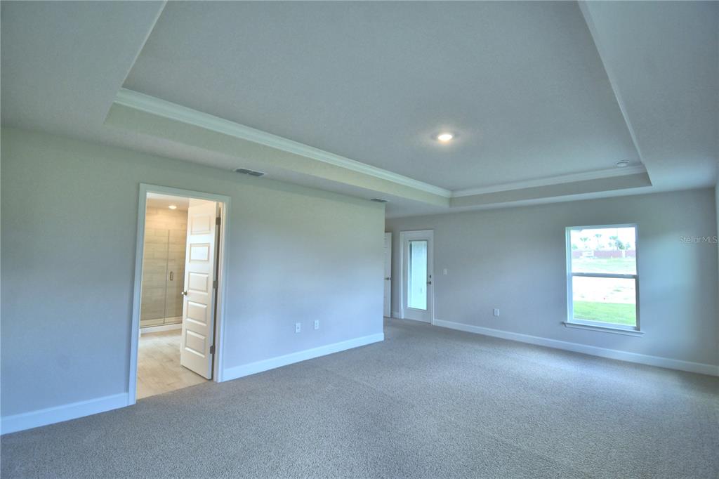 Crown Molding, High Ceilings, In Wall Pest System, Primary Bedroom Main Floor, Split Bedroom, Stone Counters, Tray Ceiling(s)
