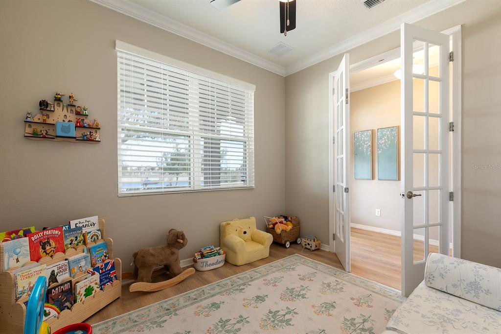 Ceiling Fan(s), Crown Molding, High Ceilings, Kitchen/Family Room Combo, Open Floorplan, PrimaryBedroom Upstairs, Solid Wood Cabinets, Stone Counters, Walk-In Closet(s)