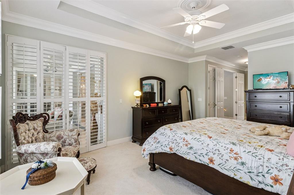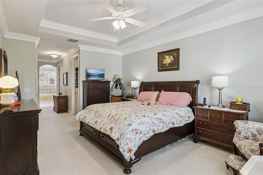 Ceiling Fan(s), Central Vacuum, Crown Molding, High Ceilings, Living Room/Dining Room Combo, Open Floorplan, Solid Surface Counters, Split Bedroom, Walk-In Closet(s), Window Treatments