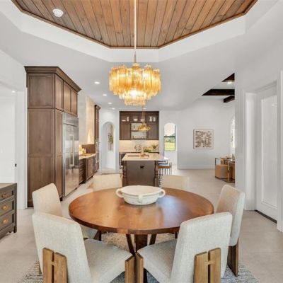 Accessibility Features, Built-in Features, Ceiling Fan(s), Crown Molding, Eating Space In Kitchen, High Ceilings, Kitchen/Family Room Combo, Open Floorplan, Primary Bedroom Main Floor, Solid Surface Counters, Solid Wood Cabinets, Split Bedroom, Stone Counters, Thermostat, Tray Ceiling(s), Walk-In Closet(s), Wet Bar