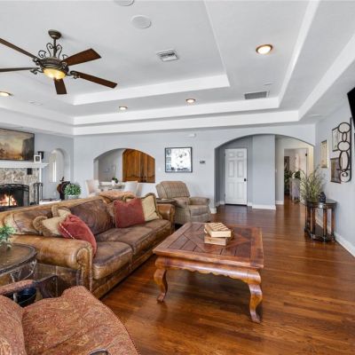 Ceiling Fan(s), High Ceilings, Open Floorplan, Primary Bedroom Main Floor, Solid Wood Cabinets, Split Bedroom, Stone Counters, Thermostat, Tray Ceiling(s), Walk-In Closet(s)