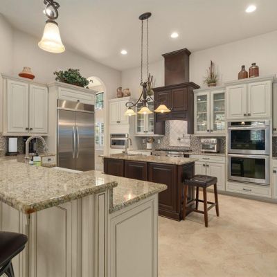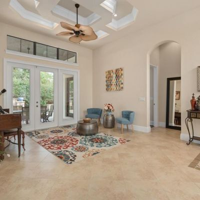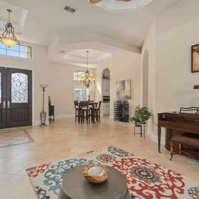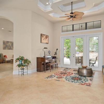 Cathedral Ceiling(s), Ceiling Fan(s), Coffered Ceiling(s), Crown Molding, Eating Space In Kitchen, High Ceilings, Kitchen/Family Room Combo, L Dining, Living Room/Dining Room Combo, Primary Bedroom Main Floor, Solid Surface Counters, Stone Counters, Tray Ceiling(s), Vaulted Ceiling(s), Window Treatments