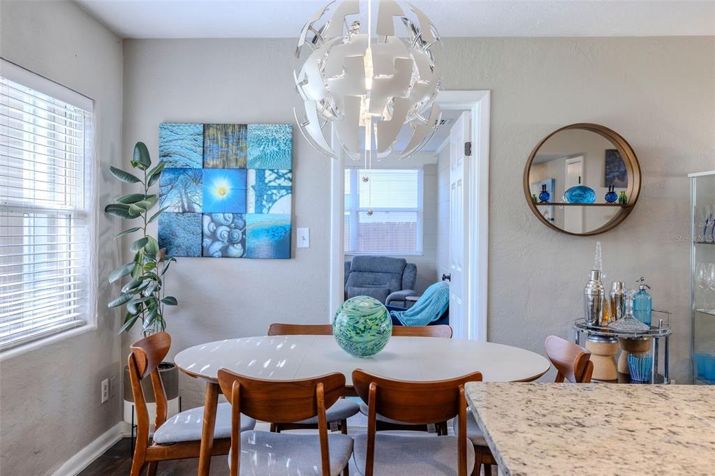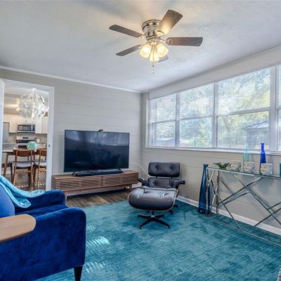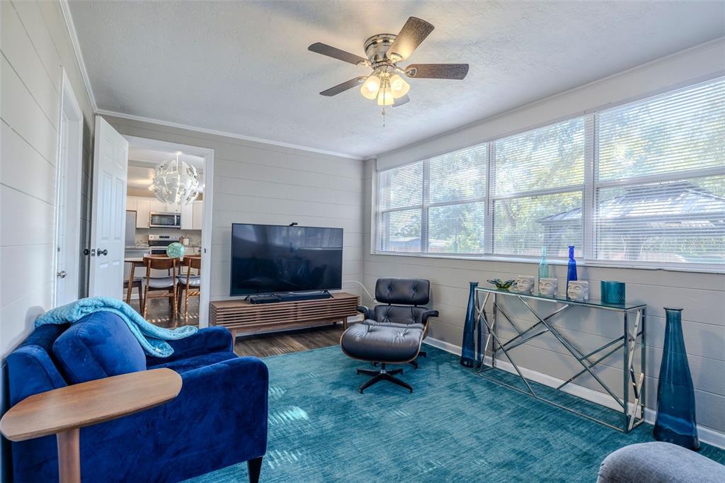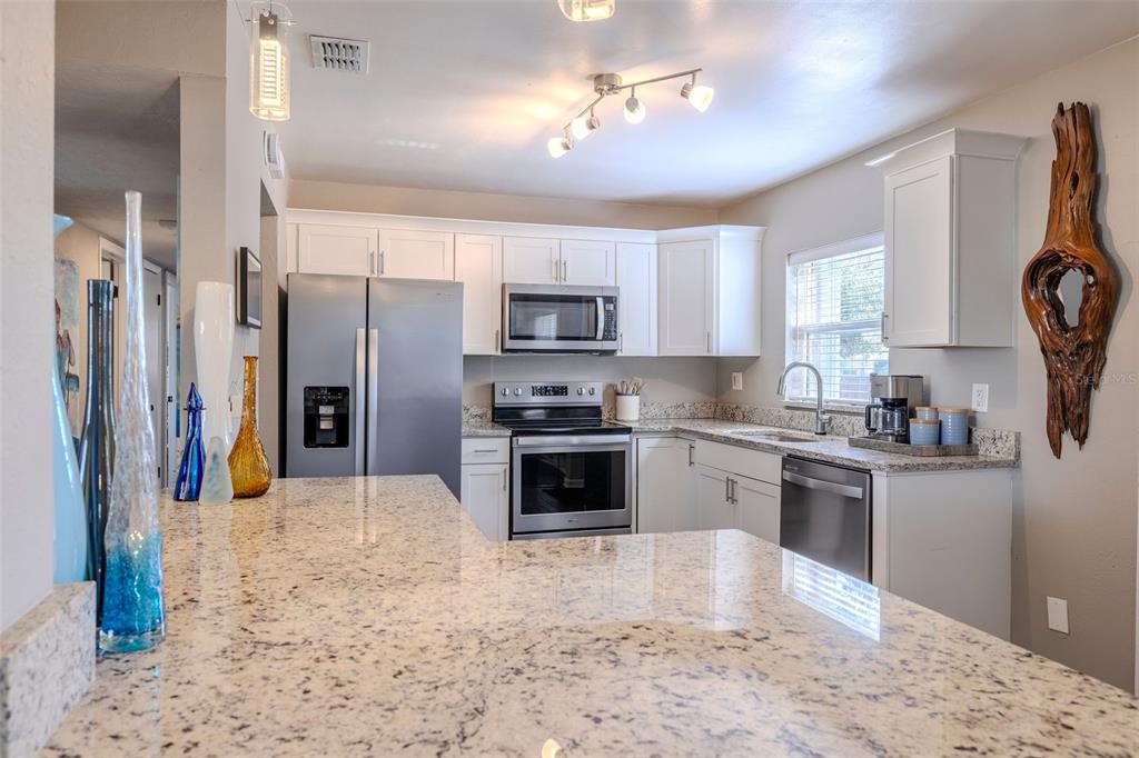 Ceiling Fan(s), Kitchen/Family Room Combo, Living Room/Dining Room Combo, Open Floorplan, Solid Surface Counters, Stone Counters, Thermostat, Window Treatments