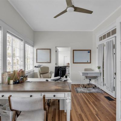 Ceiling Fan(s), Chair Rail, Crown Molding, Eating Space In Kitchen, High Ceilings, Primary Bedroom Main Floor, Solid Surface Counters, Stone Counters