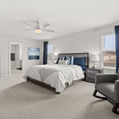 Ceiling Fan(s), Living Room/Dining Room Combo, Open Floorplan, PrimaryBedroom Upstairs, Split Bedroom, Walk-In Closet(s), Window Treatments