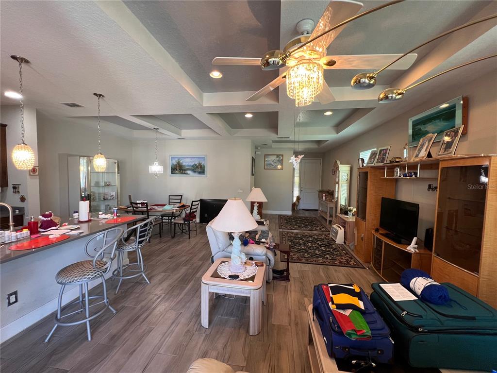 Ceiling Fan(s), High Ceilings, Kitchen/Family Room Combo, Living Room/Dining Room Combo, Open Floorplan, PrimaryBedroom Upstairs, Solid Surface Counters, Walk-In Closet(s)