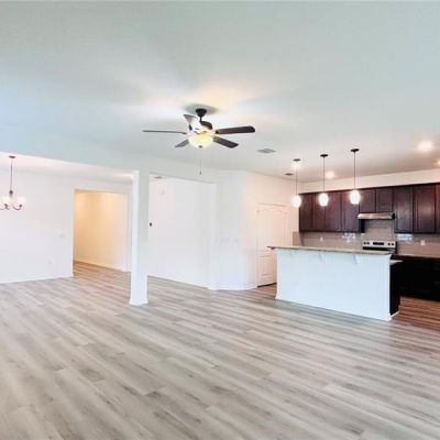 Ceiling Fan(s), Eating Space In Kitchen, High Ceilings, Kitchen/Family Room Combo, Open Floorplan, Primary Bedroom Main Floor, Solid Wood Cabinets, Split Bedroom, Stone Counters, Thermostat