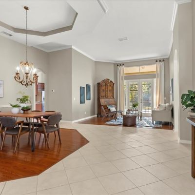 Ceiling Fan(s), Crown Molding, High Ceilings, Kitchen/Family Room Combo, Solid Surface Counters, Tray Ceiling(s), Window Treatments