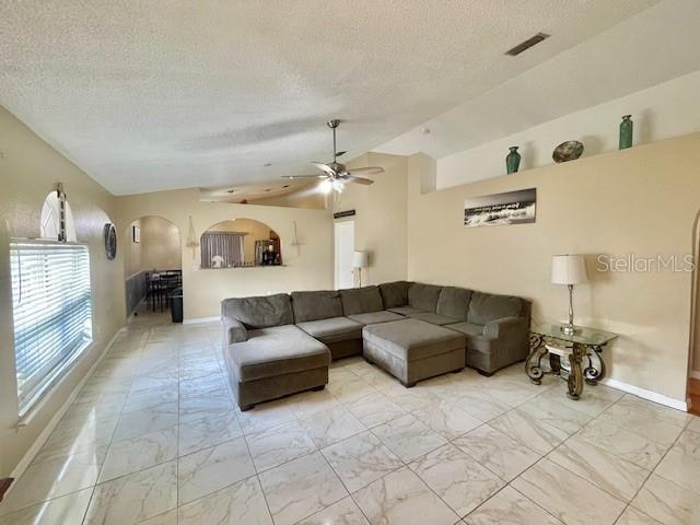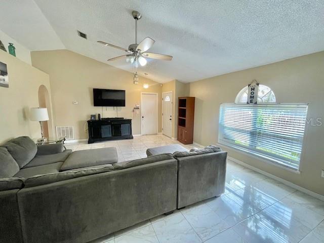 Ceiling Fan(s), Eating Space In Kitchen, Living Room/Dining Room Combo, Primary Bedroom Main Floor, Solid Surface Counters, Split Bedroom, Window Treatments