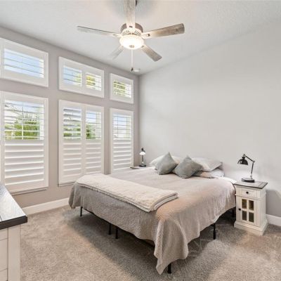 Ceiling Fan(s), High Ceilings, Smart Home, Stone Counters, Thermostat, Window Treatments