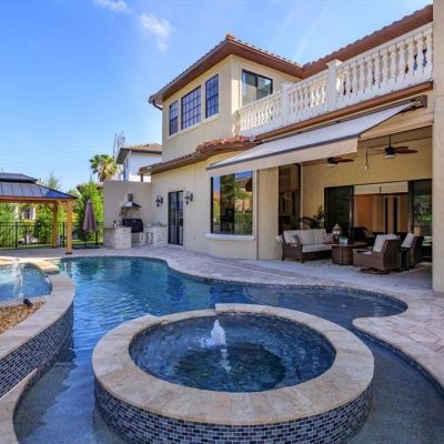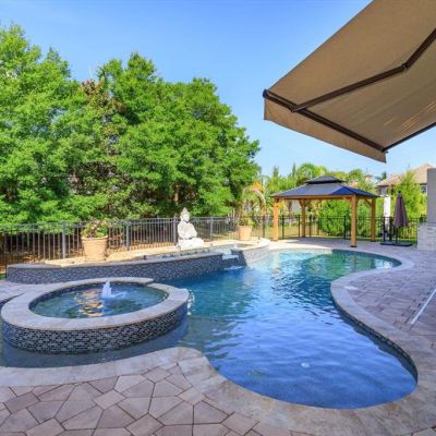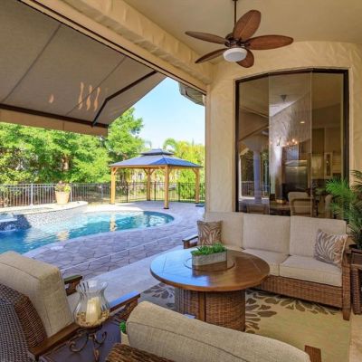 Awning(s), Balcony, Courtyard, Irrigation System, Outdoor Kitchen, Private Mailbox, Sidewalk, Sliding Doors