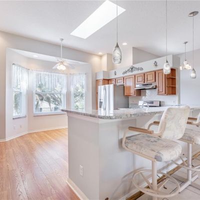 Cathedral Ceiling(s), Ceiling Fan(s), Eating Space In Kitchen, High Ceilings, Open Floorplan, Primary Bedroom Main Floor, Skylight(s), Solid Surface Counters, Solid Wood Cabinets, Split Bedroom, Stone Counters, Thermostat, Vaulted Ceiling(s), Walk-In Closet(s), Window Treatments