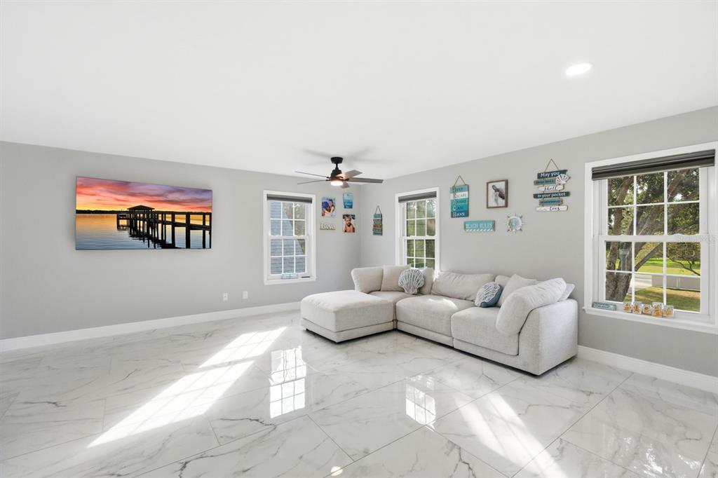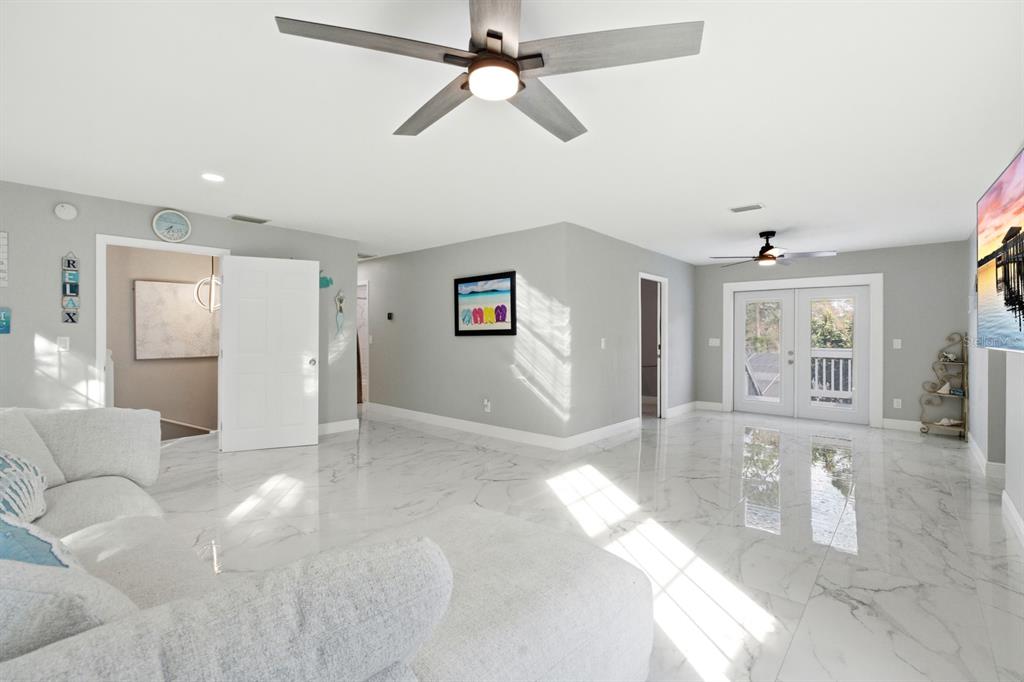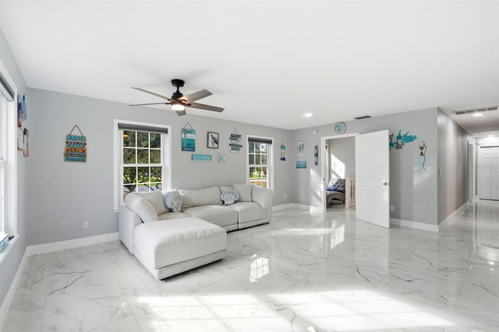 Ceiling Fan(s), Eating Space In Kitchen, Kitchen/Family Room Combo, Primary Bedroom Main Floor, Stone Counters