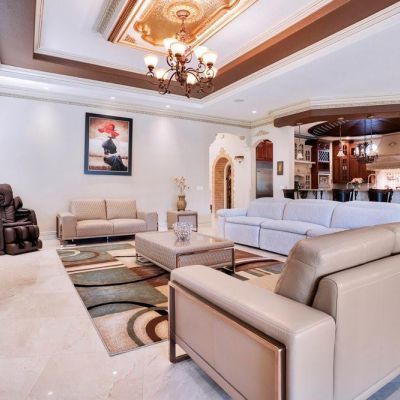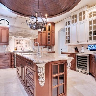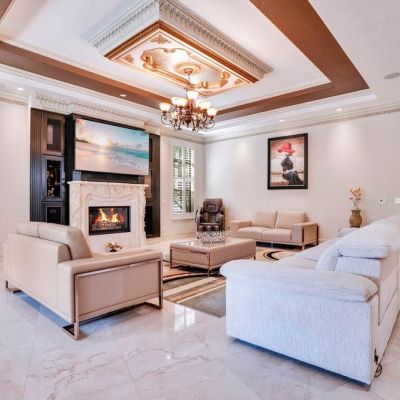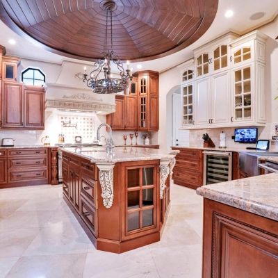 Built-in Features, Cathedral Ceiling(s), Ceiling Fan(s), Coffered Ceiling(s), Crown Molding, Eating Space In Kitchen, High Ceilings, Kitchen/Family Room Combo, Pest Guard System, Sauna, Solid Wood Cabinets, Stone Counters, Thermostat, Tray Ceiling(s), Vaulted Ceiling(s), Walk-In Closet(s), Window Treatments