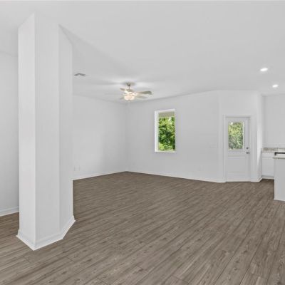 Attic Fan, Ceiling Fan(s), Kitchen/Family Room Combo, Open Floorplan, Pest Guard System, PrimaryBedroom Upstairs, Solid Surface Counters, Solid Wood Cabinets, Stone Counters, Thermostat, Walk-In Closet(s), Window Treatments
