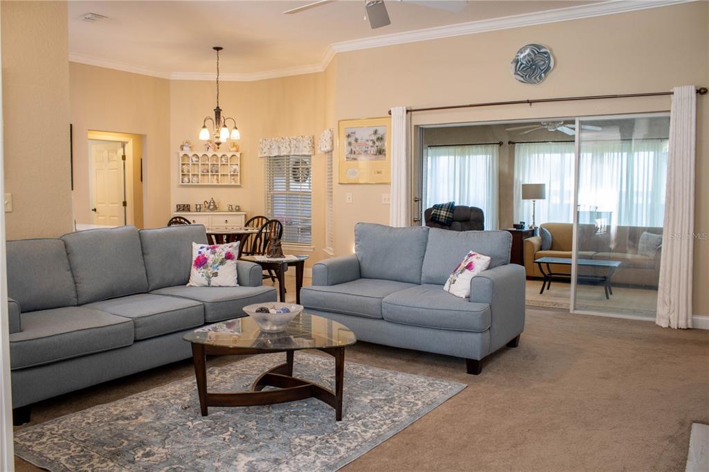 Ceiling Fan(s), Crown Molding, Eating Space In Kitchen, High Ceilings, Open Floorplan, Primary Bedroom Main Floor, Solid Surface Counters, Solid Wood Cabinets, Split Bedroom, Stone Counters, Thermostat, Tray Ceiling(s), Walk-In Closet(s), Window Treatments