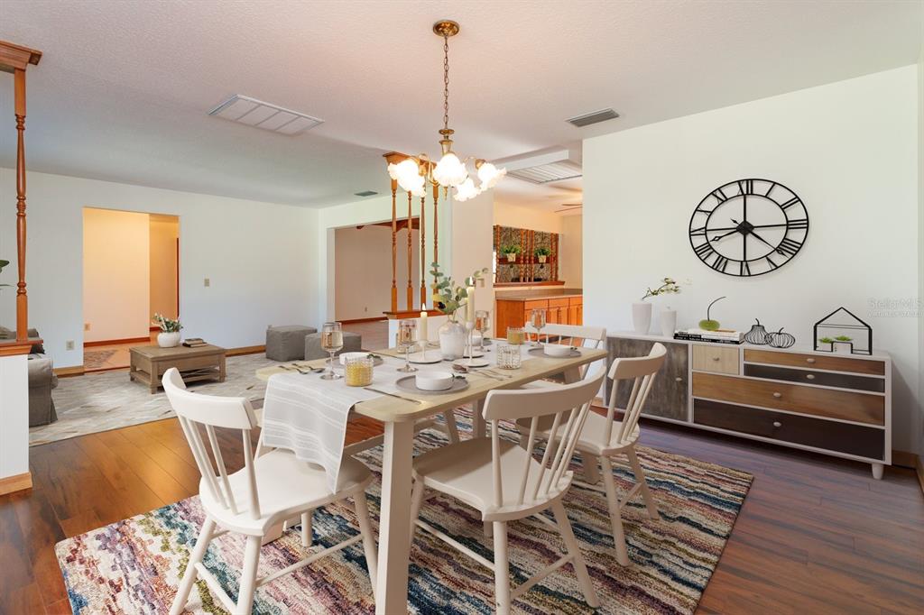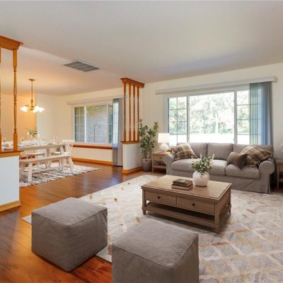 High Ceilings, Kitchen/Family Room Combo, Living Room/Dining Room Combo, Split Bedroom, Walk-In Closet(s), Window Treatments