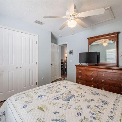 Ceiling Fan(s), Crown Molding, Eating Space In Kitchen, Solid Surface Counters, Solid Wood Cabinets, Split Bedroom, Thermostat, Vaulted Ceiling(s), Walk-In Closet(s)