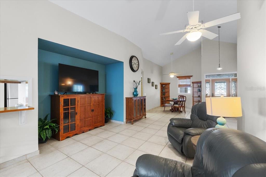 Ceiling Fan(s), Eating Space In Kitchen, High Ceilings, Living Room/Dining Room Combo, Open Floorplan