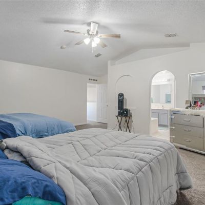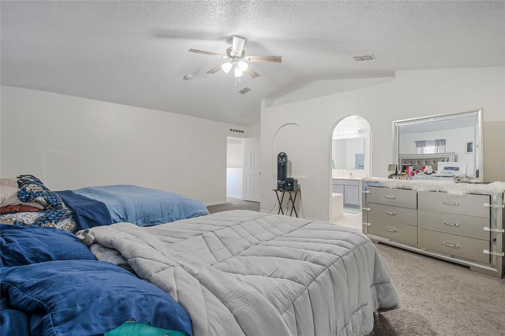 Cathedral Ceiling(s), Ceiling Fan(s), Kitchen/Family Room Combo, PrimaryBedroom Upstairs, Split Bedroom, Thermostat, Walk-In Closet(s)