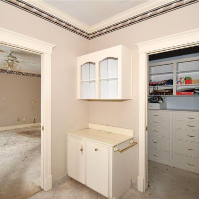 Built-in Features, Ceiling Fan(s), Crown Molding, Dry Bar, Eating Space In Kitchen, High Ceilings, Living Room/Dining Room Combo, PrimaryBedroom Upstairs, Solid Surface Counters, Solid Wood Cabinets, Thermostat, Walk-In Closet(s)