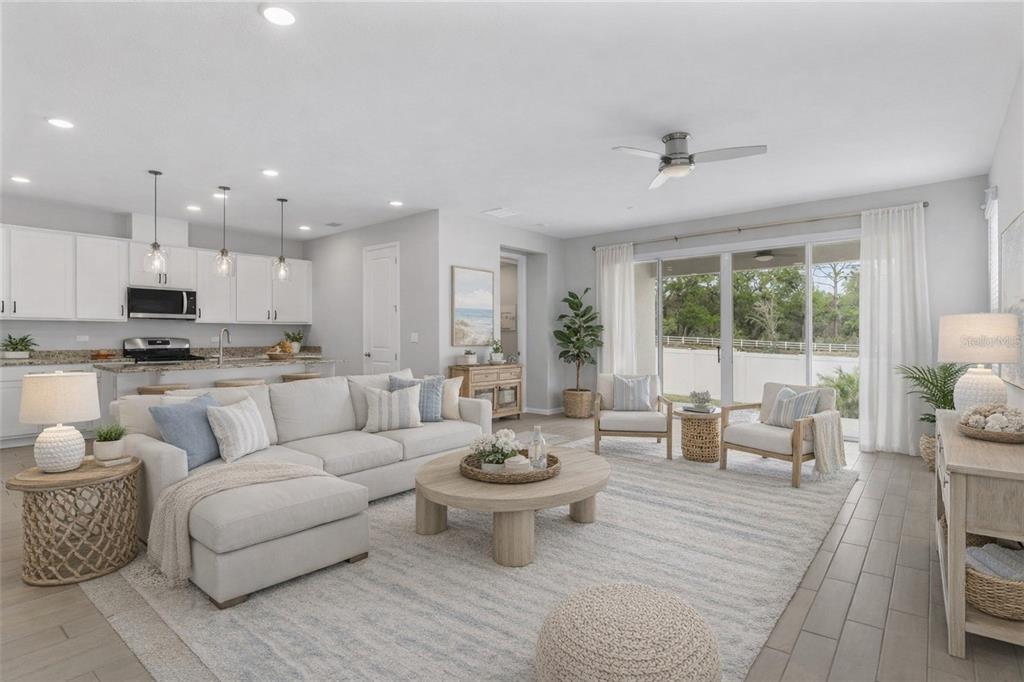 Ceiling Fan(s), High Ceilings, Kitchen/Family Room Combo, Open Floorplan, Primary Bedroom Main Floor, Split Bedroom, Stone Counters, Walk-In Closet(s), Window Treatments