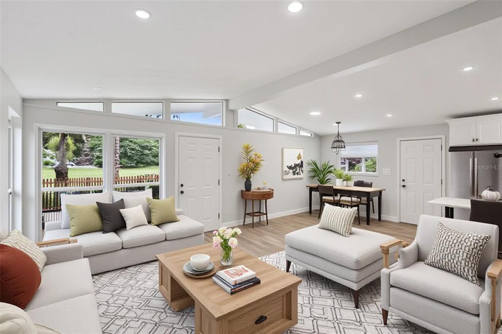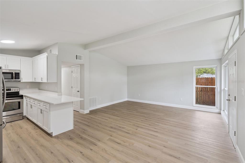 Kitchen/Family Room Combo, Open Floorplan, Vaulted Ceiling(s)