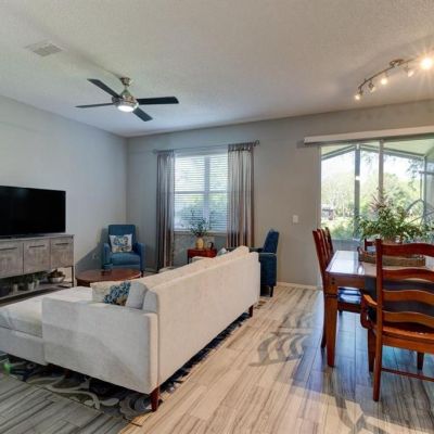 Ceiling Fan(s), High Ceilings, Living Room/Dining Room Combo, Open Floorplan, Solid Surface Counters, Walk-In Closet(s), Window Treatments