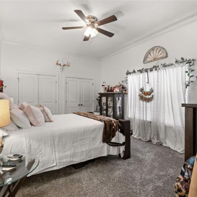 Ceiling Fan(s), Crown Molding, Kitchen/Family Room Combo, Open Floorplan, Stone Counters, Walk-In Closet(s)