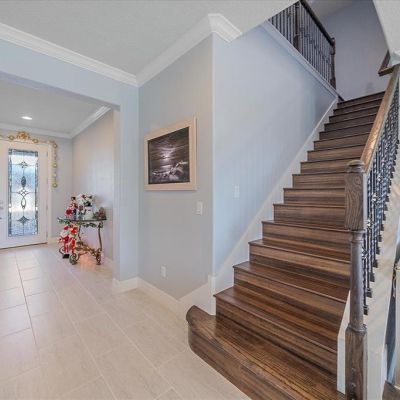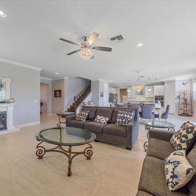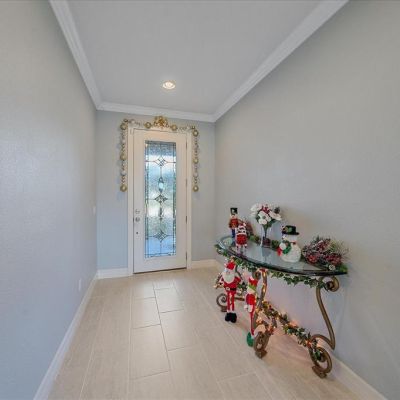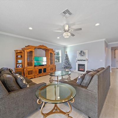 Ceiling Fan(s), Crown Molding, High Ceilings, Living Room/Dining Room Combo, PrimaryBedroom Upstairs, Solid Surface Counters, Walk-In Closet(s), Window Treatments
