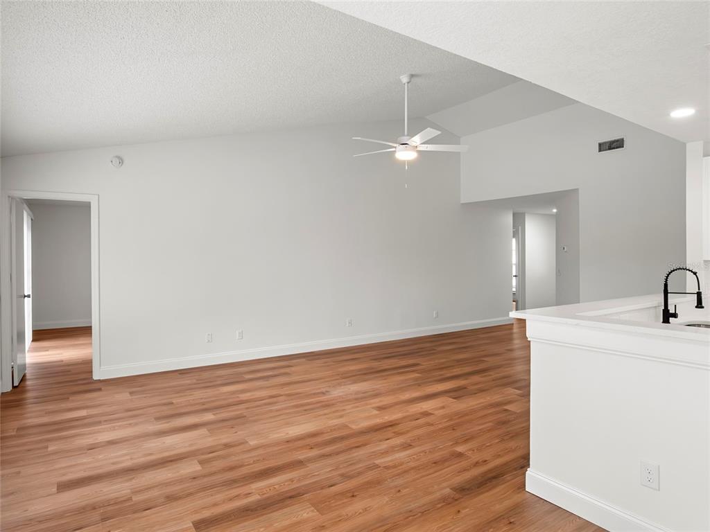 Ceiling Fan(s), High Ceilings, Kitchen/Family Room Combo, Open Floorplan, Primary Bedroom Main Floor, Stone Counters, Thermostat, Vaulted Ceiling(s), Walk-In Closet(s)