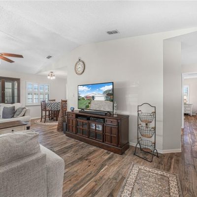 Cathedral Ceiling(s), Ceiling Fan(s), Living Room/Dining Room Combo, Primary Bedroom Main Floor, Solid Surface Counters, Solid Wood Cabinets, Walk-In Closet(s)