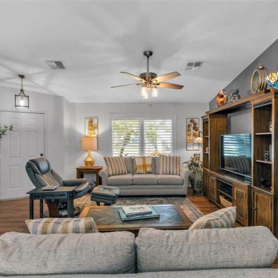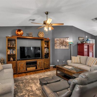 Built-in Features, Ceiling Fan(s), Eating Space In Kitchen, Living Room/Dining Room Combo, Primary Bedroom Main Floor, Solid Wood Cabinets, Split Bedroom, Stone Counters, Vaulted Ceiling(s), Window Treatments